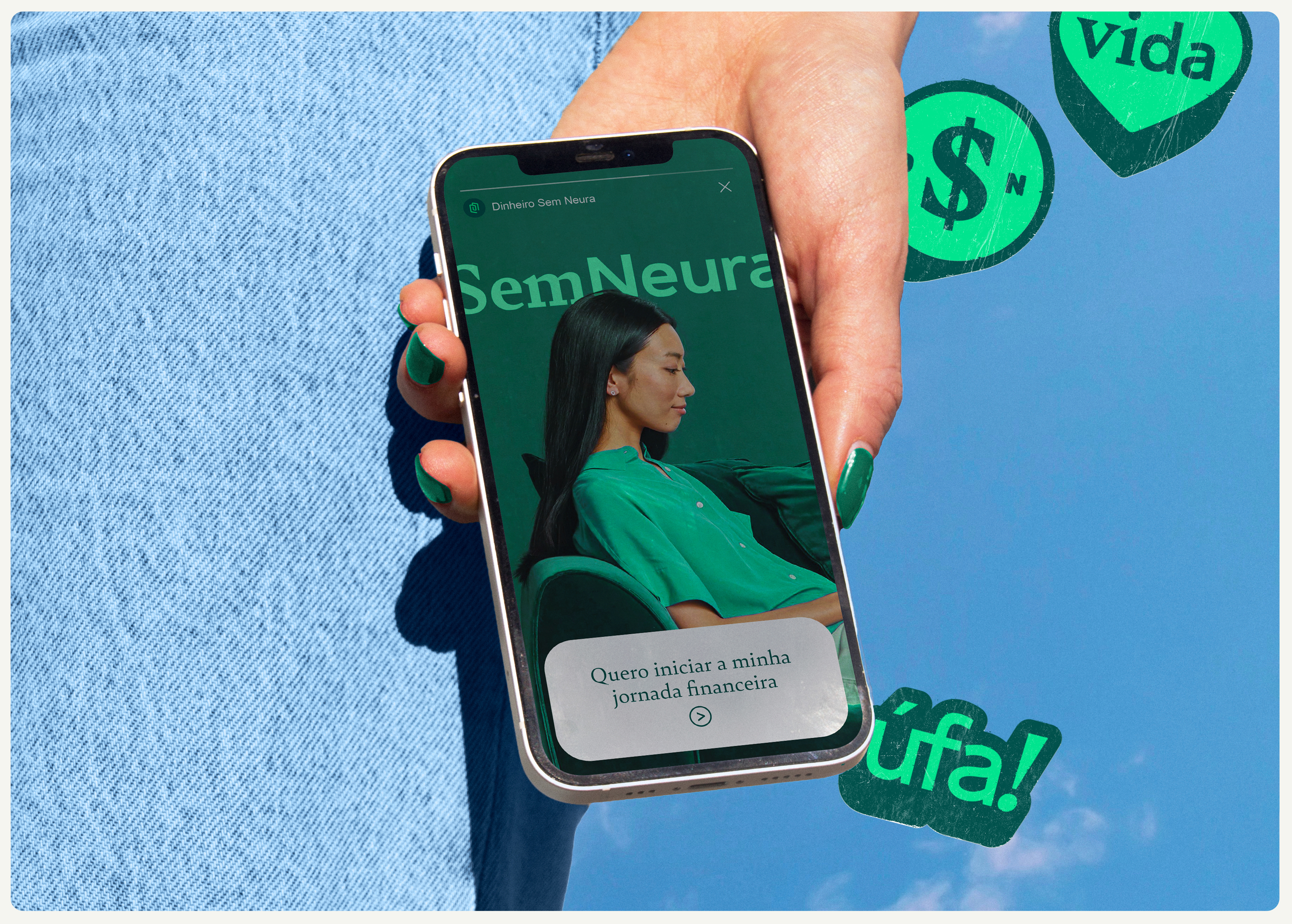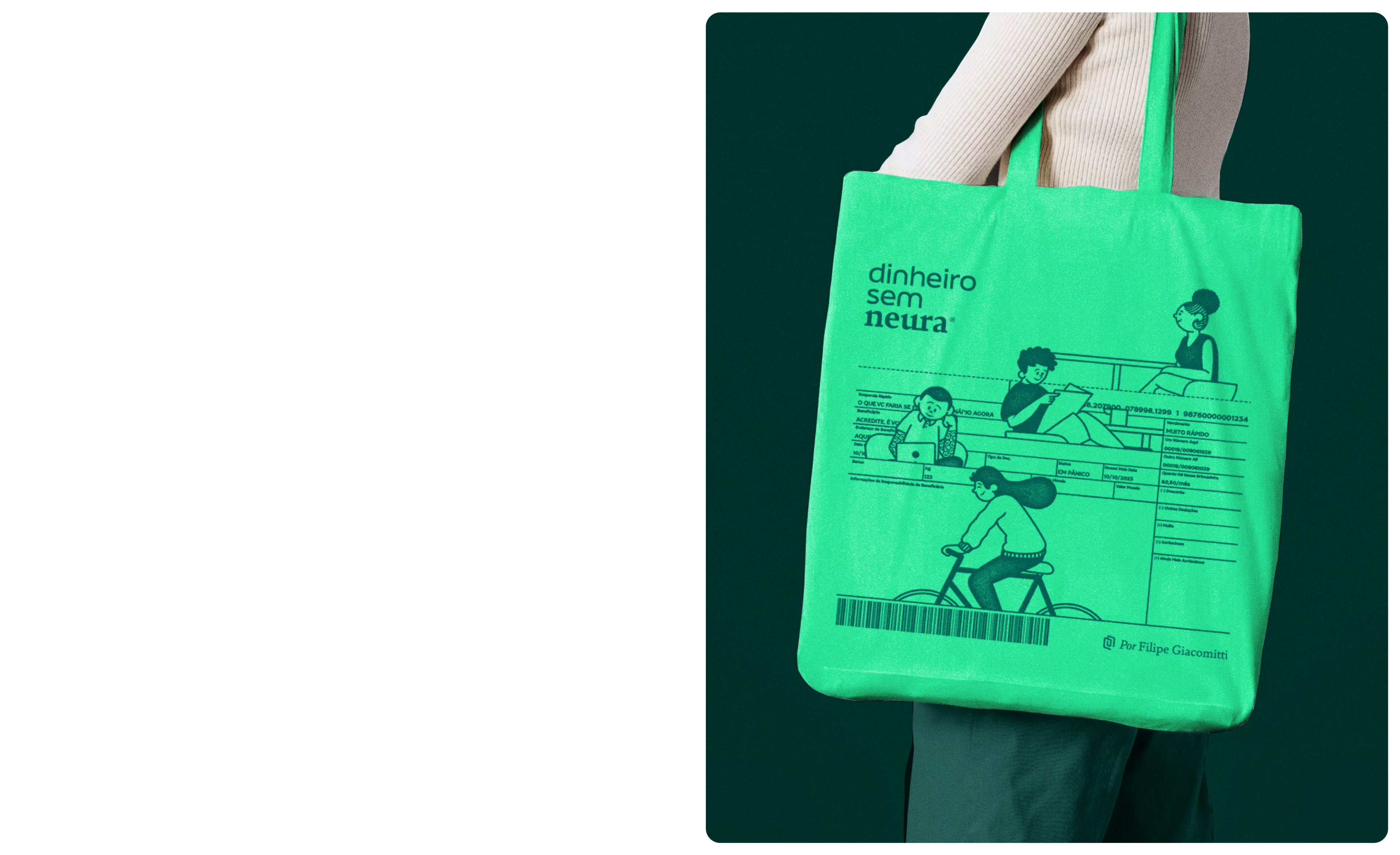 A marca é um produto lançado pelo profissional em finanças Filipe Giacomitti que, Após acumular anos de experiência dentro de instituições bancárias, lança sua consultoria pessoal para aplicar a grande lição que aprendeu ao longo dos anos: cada um tem uma relação diferente com dinheiro. Pensando nisso, co-criamos a Dinheiro Sem Neura, a identidade que diz que sua relação com dinheiro pode ser mais leve, organizada e, por que não, divertida.